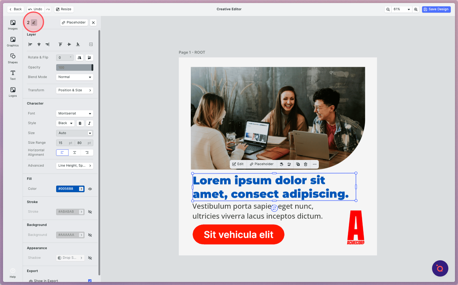 | Short Copy | One or two short sentences for quick impact. | Text |