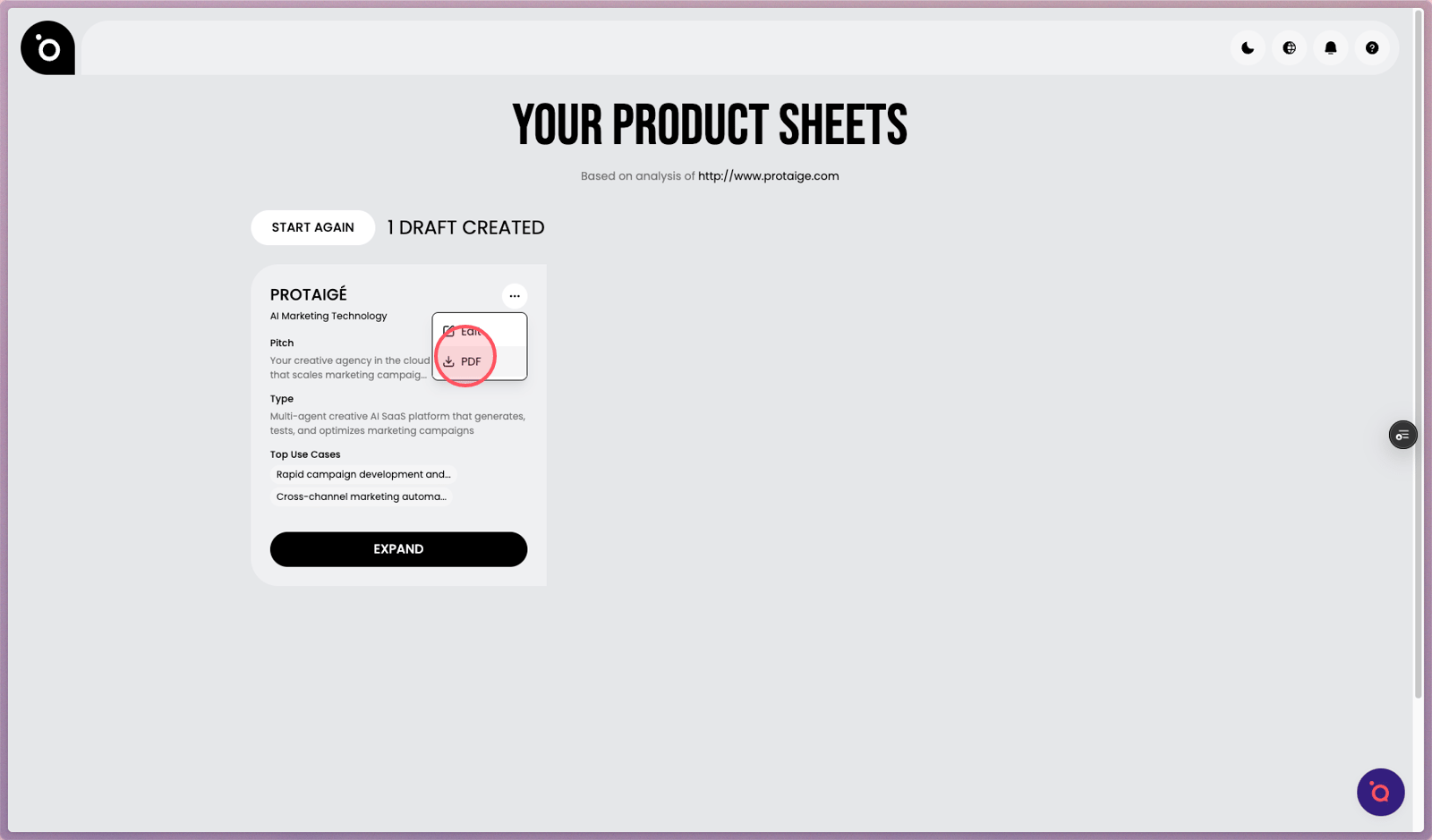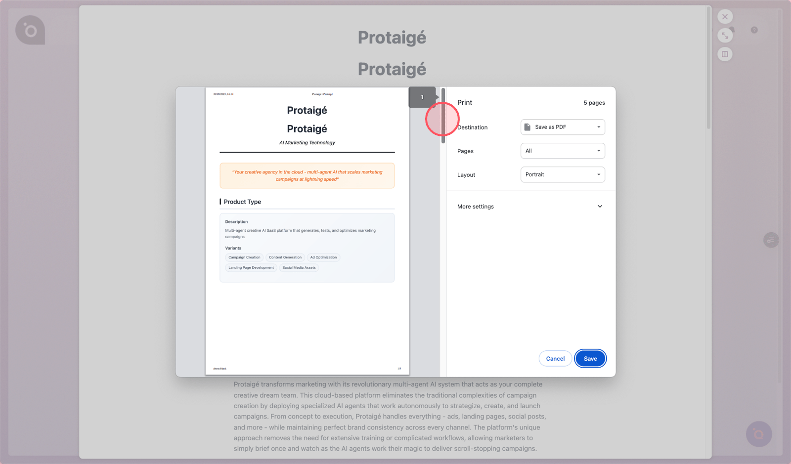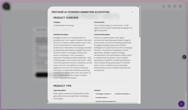 You can review, edit, and export these specs as a PDF, then upload them into your Brand DNA library to power campaign creation inside Protaigé. It’s the fastest way to turn what’s on your website into campaign-ready documentation.